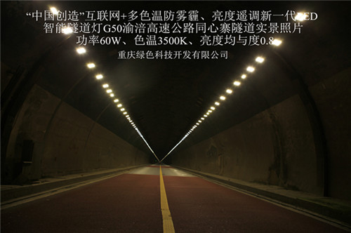 今年5月份,重慶渝涪高速公路有限公司與重慶綠色科技開發(fā)有限公司就G50滬渝高速黃草山、同心寨、廟堡隧道LED綠色照明節(jié)能改造項目,以合同能源管理模式簽訂了合同。該項目使用“中國創(chuàng)造”互聯(lián)網(wǎng)+多色溫防霧霾、亮度遙調(diào)新一代LED智能隧道燈及遠程智能控制系統(tǒng),對原隧道3629盞鈉燈實施綠色照明節(jié)能改造。三個隧道的六個隧道單元,總長度為5.5公里,雙邊布燈11公里,是目前國內(nèi)外隧道照明中使用該產(chǎn)品里程最長、數(shù)量最多的綠色照明工程。該工程現(xiàn)已全面竣工并投入使用。