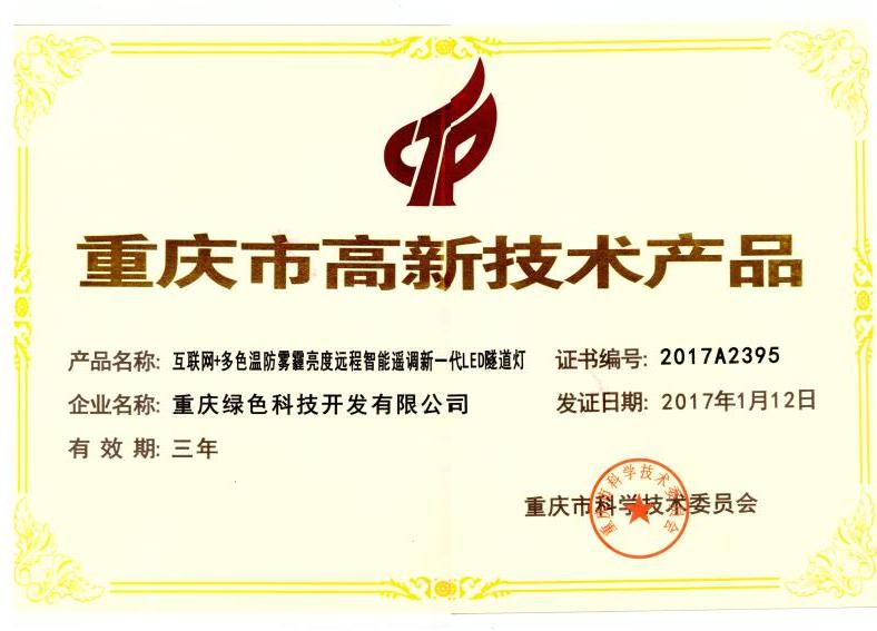 我司研發(fā)、制造的“互聯(lián)網(wǎng)+多色溫防霧霾亮度遠(yuǎn)程智能遙調(diào)新一代LED隧道燈”榮獲市高新技術(shù)產(chǎn)品認(rèn)證
