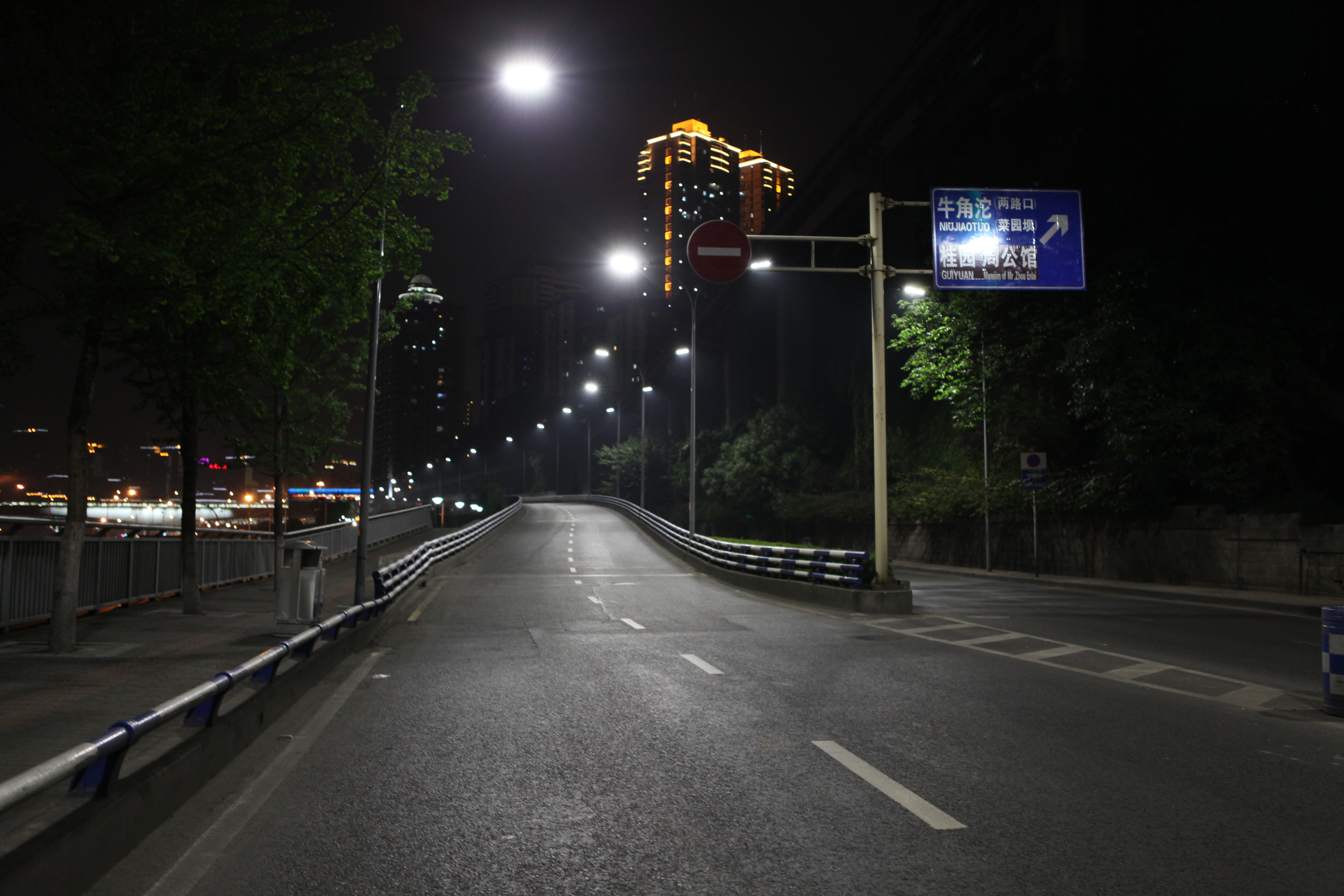 重慶市南岸區(qū)鵝風(fēng)支路使用重慶“中國創(chuàng)造”世界領(lǐng)先物聯(lián)網(wǎng)多色溫防霧霾LED人工智能路燈